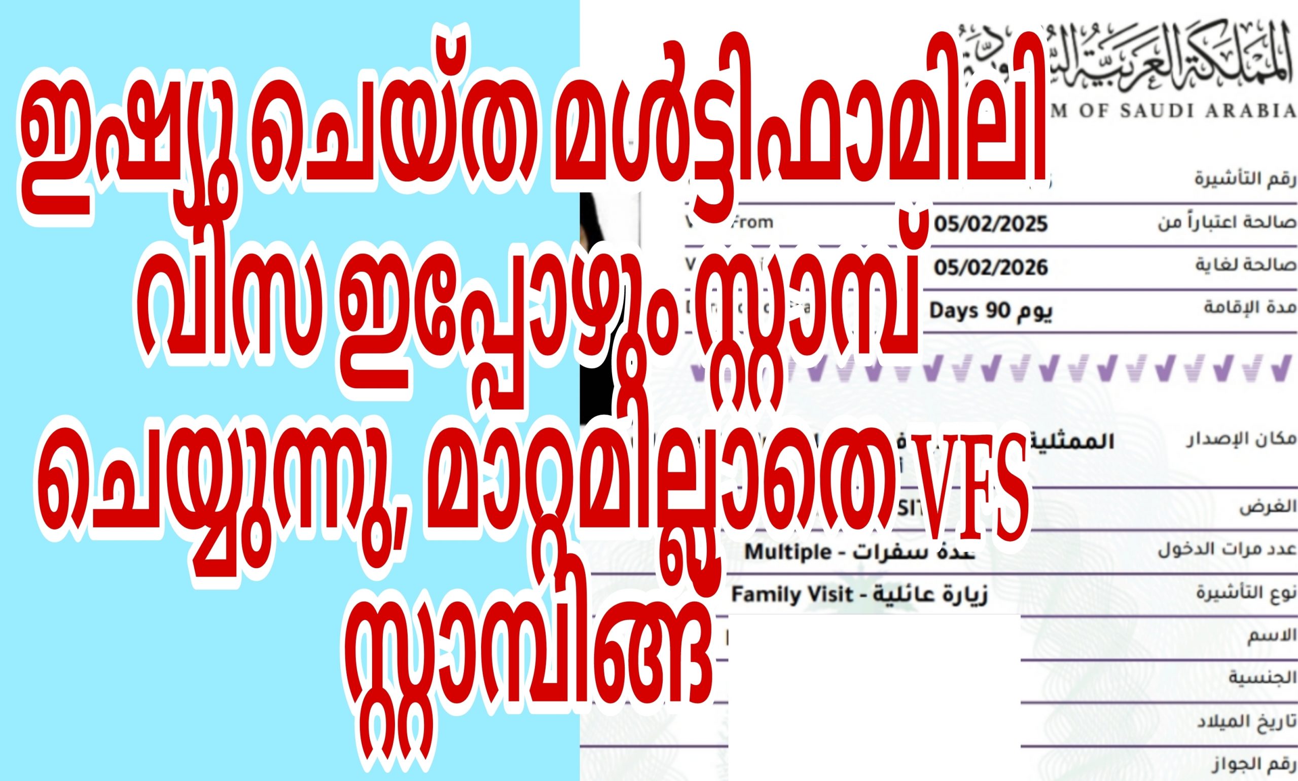 അതേസമയം, നേരത്തെ സഊദിയിൽ നിന്ന് ഇഷ്യു ചെയ്ത മൾട്ടിപ്പിൾ വിസ VFS വഴി സ്റ്റാമ്പ് ചെയ്തു കിട്ടുന്നുണ്ട്. VFS ഓഫീസുകൾ ഇത്തരം വിസകൾ സ്വീകരിച്ച് സ്റ്റാമ്പിങ് നടപടികൾ പൂർത്തീകരിച്ചു നൽകുന്നുണ്ട്. സഊദി മോഫയിൽ നിന്ന് ലഭിച്ച വിസകൾ ഇന്നും ഇന്നലെയുമായി മൾട്ടിപ്പിൾ വിസ സ്റ്റാമ്പ് ചെയ്ത് ലഭിച്ചതായി പ്രവാസി കുടുംബങ്ങൾ മലയാളം പ്രസ്സ് ഓൺലൈനുമായി പങ്ക് വെച്ചു. അതിനിടെ, ഇഷ്യു ചെയ്ത മൾട്ടിപ്പിൾ വിസകൾ സ്റ്റാമ്പ് ചെയ്ത് ലഭിക്കുന്നില്ല എന്ന ചില പ്രചരണം നടക്കുന്നുണ്ട്. ഇത് വാസ്തവ വിരുദ്ധമാണെന്നാണ് അനുഭവങ്ങൾ വ്യക്തമാക്കുന്നത്.