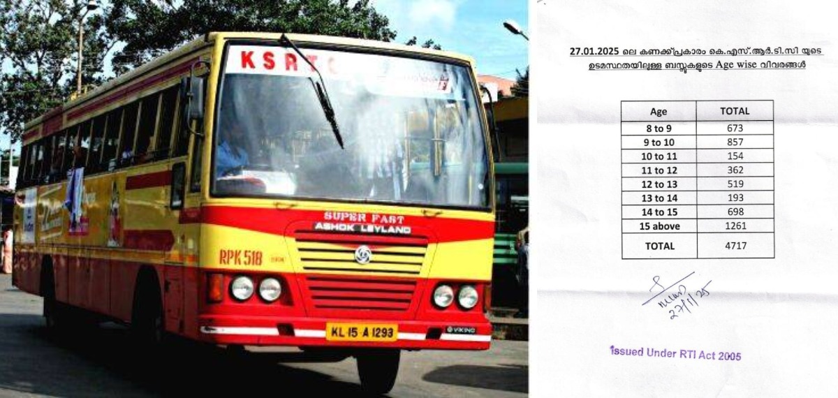പുതിയ ബസുകൾ വാങ്ങുന്നില്ല എന്നും വിവരാവകാശ രേഖയിൽ പറയുന്നു. നിലവിലുളള ബസുകളിൽ 600 ലധികവും അറ്റകുറ്റപണികള്ക്കായി വർക്ക് ഷോപ്പുകളിലാണ്. എട്ട് മുതൽ ഒമ്പത് വർഷം കാലപ്പഴക്കമുളള 673 ബസുകളാണ് സംസ്ഥാനത്ത് ഉളളത്. ഒമ്പത് മുതൽ പത്ത് വർഷം വരെ കാലപ്പഴക്കമുളള 857 ബസുകൾ, 11 മുതൽ 12 വർഷം പഴക്കമുളള 362 ബസുകൾ, 12 മുതൽ 13 വർഷം പഴക്കമുളള 519 ബസുകൾ, 13 മുതൽ 14 വർഷം വരെ പഴക്കമുളള 193 ബസുകൾ, 14 മുതൽ 15 വരെ കാലപ്പഴക്കമുളള 698 ബസുകൾ, 15 ഉം അതിൽ കൂടുതൽ വർഷവും പഴക്കമുളള 1261 ഉം ബസുകളാണ് ഉളളത്.