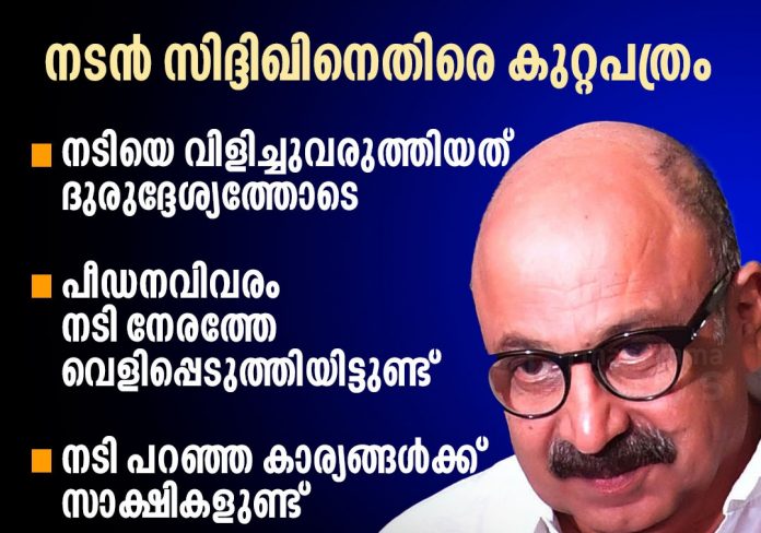 കുറ്റകൃത്യം നടന്ന് എട്ട് വര്ഷത്തിന് ശേഷമാണ് പരാതിയെന്നതായിരുന്നു സിദിഖ് ആരോപണം നിഷേധിക്കാന് ഉപയോഗിച്ച പ്രധാന വാദം. അതിനിടെ യുവതി സമാന ആരോപണം ഉന്നയിച്ച ഫെയ്സ്ബുക്ക് പോസ്റ്റുകളിലൊന്നും തന്റെ പേരില്ലെന്നും വാദിക്കുന്നു. അതിനുള്ള മറുപടിയും കുറ്റപത്രത്തിലുണ്ട്.