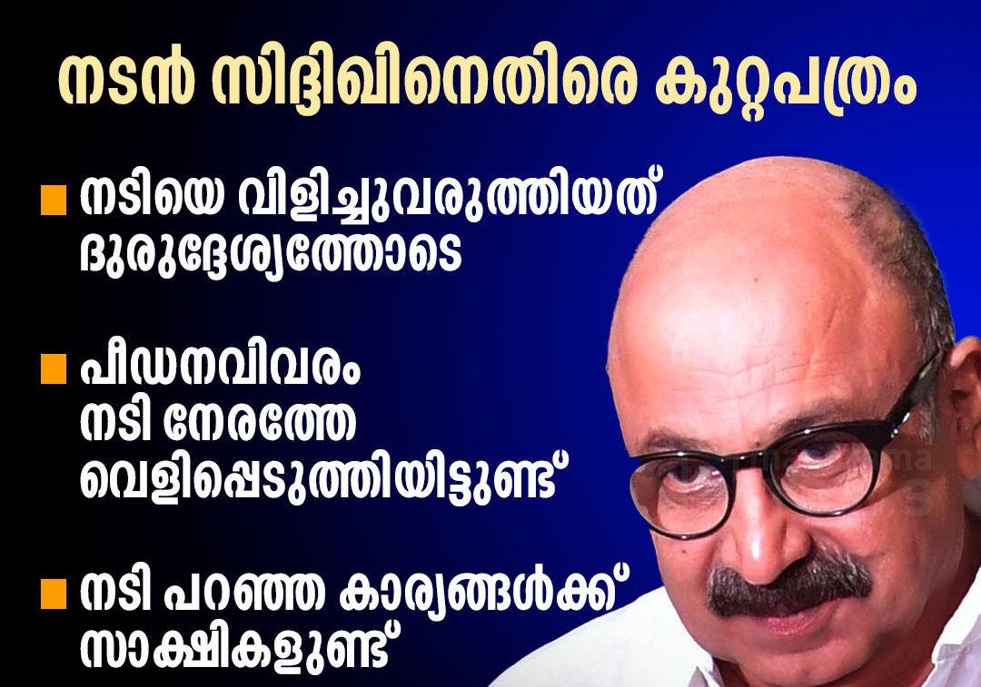 അമ്മ ജനറല് സെക്രട്ടറി സ്ഥാനത്ത് നിന്നുള്ള സിദിഖിന്റെ പടിയിറക്കത്തിന് വഴിവെച്ച പീഡനപരാതി ശരിയെന്ന് ഉറപ്പിക്കുകയാണ് പ്രത്യേക അന്വേഷണസംഘം. സിനിമയില് അഭിനയിപ്പിക്കാമെന്ന് യുവനടിയെ പറഞ്ഞ് വിശ്വസിപ്പിച്ച് ഹോട്ടല് മുറിയിലേക്ക് വിളിച്ചുവരുത്തി പീഡിപ്പിച്ചെന്ന് തെളിവ് നിരത്തി കുറ്റപത്രത്തില് സ്ഥിരീകരിക്കുന്നു. 2016 ജനുവരി 28 ന് തിരുവനന്തപുരത്ത് മാസ്കോട് ഹോട്ടലിലെ മുറിയിലായിരുന്നു പീഡനം. സുഖമായിരിക്കട്ടേ എന്ന സിനിമയുടെ പ്രിവ്യൂവിനായെത്തിയ നടിയെ സിദിഖ് ഹോട്ടലിലേക്ക് ക്ഷണിക്കുകയായിരുന്നു. പ്രിവ്യൂ കാണാന് നടിയേയും കുടുംബത്തേയും സിദിഖ് ക്ഷണിച്ചതിനും യുവനടി മാസ്കോട് ഹോട്ടലില് എത്തിയതിനും സിദിഖ് അന്ന് അവിടെ താമസിച്ചതിനും സാക്ഷിമൊഴികളും ഡിജിറ്റല് തെളിവുകളുമുണ്ടെന്നും കുറ്റപത്രത്തില് വിശദീകരിക്കുന്നു.