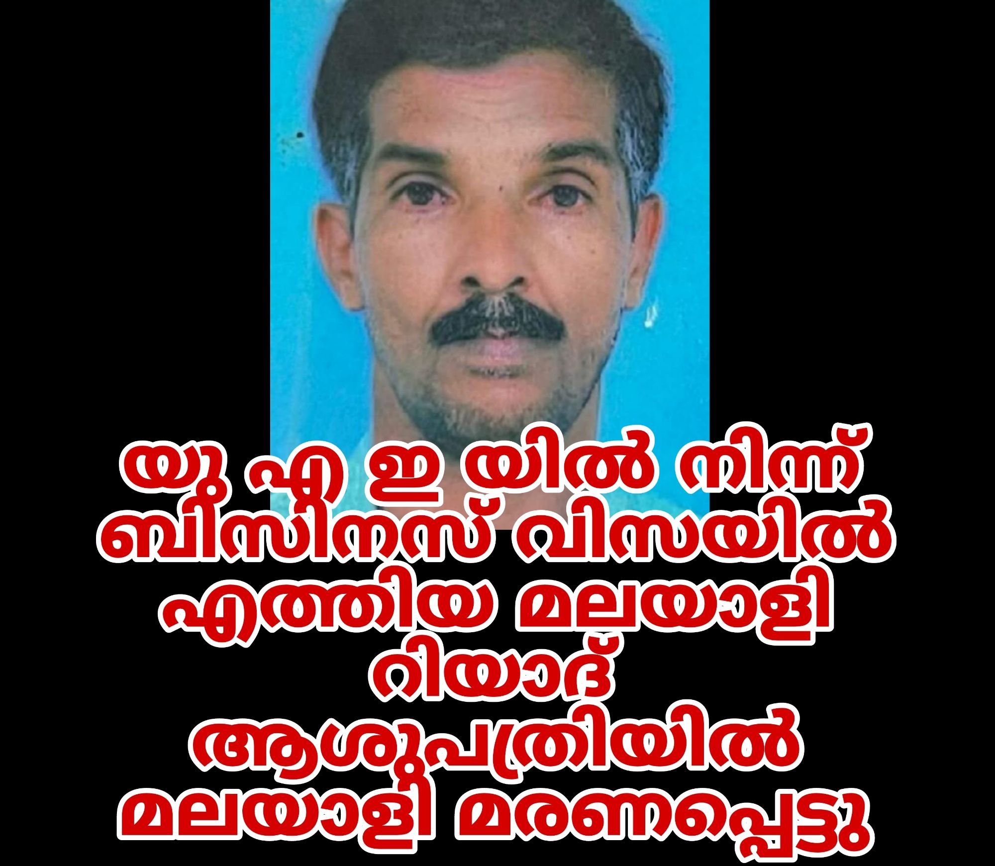 യു എ ഇ യിൽ നിന്ന് ബിസിനസ് വിസയിൽ എത്തിയ മലയാളി റിയാദ് ആശുപത്രിയിൽ മലയാളി മരണപ്പെട്ടു