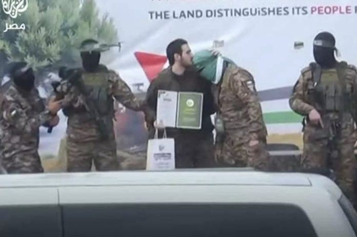 വിട്ടയക്കുന്നതിന് മുമ്പ് ഹമാസ് പോരാളികളുടെ നെറ്റിയിൽ ചുംബിച്ച് ഇസ്റാഈലി ബന്ദി; കയ്യടിച്ച് ജനക്കൂട്ടം, വീഡിയോ വൈറൽ