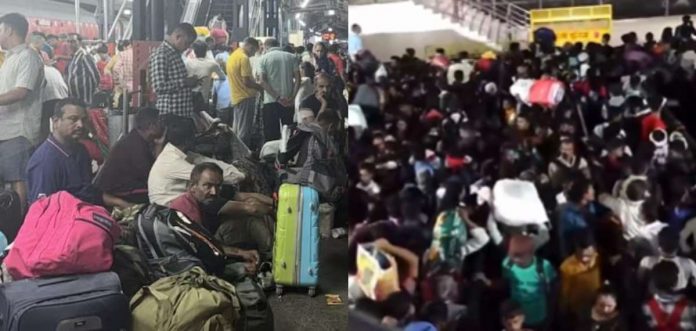 8.05 ന് എത്തേണ്ടിയിരുന്ന ശിവഗംഗ എക്സ്പ്രസ് 9.20 നാണ് എത്തിയത്. 9.15 ന് പുറപ്പെടേണ്ട സ്വാന്ത്ര്യസമര സേനാനി എക്സ്പ്രസ് പ്ലാറ്റ്ഫോമില് ഉണ്ടായിരുന്നു. 9.25 ന് സ്റ്റേഷനില് നിന്നും പുറപ്പെടേണ്ട ജമ്മു രാജഥാനി എക്സ്പ്രസ് വൈകി, 10 മണിക്ക് ഷെഡ്യൂള് ചെയ്ത ലക്നൗ എക്സ്പ്രസും വൈകി ഓടിക്കൊണ്ടിരിക്കുന്നതിനാലുമാണ് രണ്ട് പ്ലാറ്റ്ഫോമിലും യാത്രക്കാര് നിറയാന് കാരണമായത്.