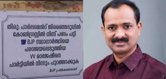 ‘രാജീവ് ചന്ദ്രശേഖറിൻ്റെ പരാജയത്തിൻ്റെ ഉത്തരവാദി, പാർട്ടിയിൽ നിന്നും പുറത്താക്കണം’; വി.വി. രാജേഷിനെതിരെ ബിജെപി പ്രതികരണ വേദിയുടെ പോസ്റ്റർ
