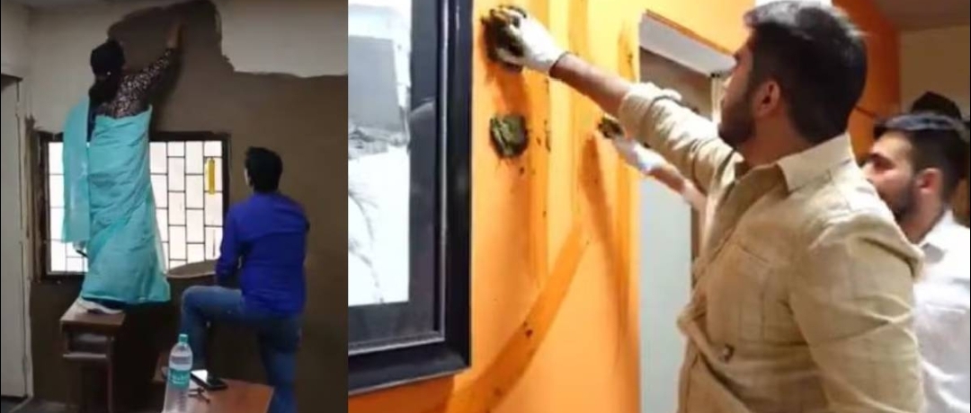 പ്രിന്‍സിപ്പാളിന്റെ ഓഫീസില്‍ ചാണകം പുരട്ടുന്നതിന്റെ വീഡിയോയും റോണക് ഖത്രി എക്‌സില്‍ പങ്കുവെച്ചിരുന്നു. പ്രിന്‍സിപ്പാളിന്റെ മുറി അവര്‍ ഉപയോഗിച്ച അതേ മെറ്റീരിയല്‍ ഉപയോഗിച്ച് പ്ലാസ്റ്റര്‍ ചെയ്യാന്‍ തങ്ങള്‍ സഹായിച്ചെന്നും മാഡം ഇനി ഓഫീസ് മുറിയില്‍ നിന്ന് എസി മാറ്റി ചാണകം പുരട്ടിയ, പ്രകൃതിദത്തമായ അന്തരീക്ഷത്തിലിരുന്ന് ജോലി ചെയ്യുമെന്ന് പ്രതീക്ഷിക്കുന്നുവെന്നും റോണക് എക്‌സില്‍ കുറിച്ചു.