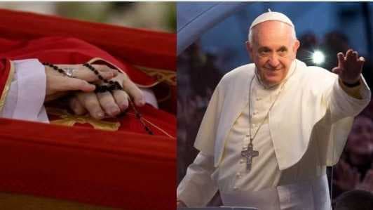 കാസാ സാന്താ മാര്ത്തയില് നിന്ന് പന്ത്രണ്ടരയ്ക്ക് വിലാപയാത്രയായാണ് മൃതദേഹം എത്തിച്ചത്. സിങ്ക് പൂശിയ, മരത്തില് തീര്ത്ത കഫീനിലാണ് പാപ്പയുടെ മൃതദേഹം കിടത്തിയിരിക്കുന്നത്. ചുവന്ന മേലങ്കിയും മാര്പാപ്പയുടെ മൈറ്റര് കിരീടവും ധരിപ്പിച്ചിട്ടുണ്ട്.