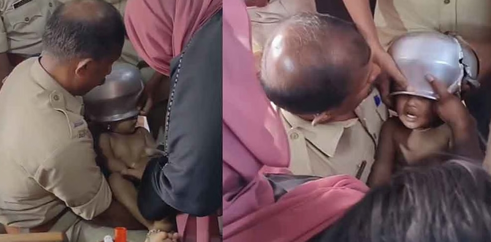 കളിക്കുന്നതിനിടെ തല അലൂമിനിയം കലത്തിൽ കുടുങ്ങി, രണ്ടു വയസുകാരിക്ക് തുണയായി ഫയർഫോഴ്സ് – വീഡിയോ