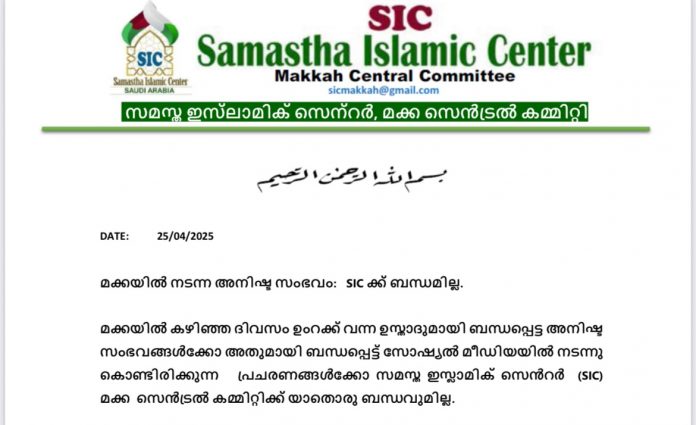 മക്കയിൽ നടന്ന അനിഷ്ട സംഭവം: SIC ക്ക് ബന്ധമില്ല: