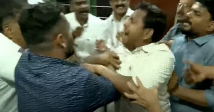 ഹെഡ്ഗേവാർ വിവാത്തിൽ പാലക്കാട് നഗരസഭയിൽ കയ്യാങ്കളി. നഗരസഭയ്ക്കുളിൽ ഏറ്റുമുട്ടി ബിജെപി കൗൺസിലർമാരും പ്രതിപക്ഷവും. വലിയ രീതിയിലുള്ള ആക്രമണമാണ് ബി ജെ പി കൗൺസിലർ മാരുടെ ഭാഗത്ത് നിന്ന് ഉണ്ടായത്. കൗൺസിൽ യോഗം ആരംഭിക്കാനിരിക്കെ പ്രതിപക്ഷ അംഗങ്ങൾ, നൈപുണ്യ വികസന കേന്ദ്രത്തിന് ഹെഡ്ഗേവാറിന്റെ പേര് നൽകുന്നത് അംഗീകരിക്കില്ലെന്ന് ആരോപിച്ചാണ് പ്രതിഷേധം.