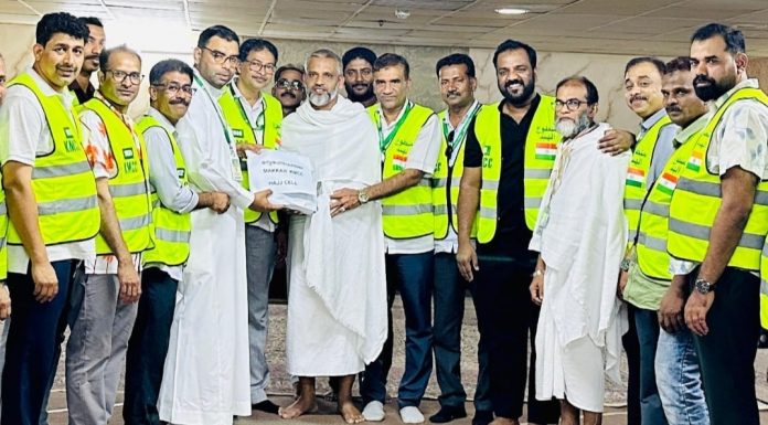 മക്ക: കേന്ദ്ര ഹജജ് കമ്മിറ്റി വഴി എത്തിയ ആദ്യ മലയാളി ഹജ്ജ് സംഘത്തെ ഊഷ്മളമായി വരെവേറ്റ് കെഎംസിസി. ഇന്നലെ പുലർച്ചെ 4.30 ന് എയർ ഇന്ത്യ എക്സ്പ്രസ്സ് വിമാന സർവീസിൽ ജിദ്ധയിൽ ഇറങ്ങിയ സംഘം രാവിലെ എട്ട് മണിയോടെ അസീസിയ്യയിലെ 92 ആം ബിൽഡിങ്ങിലാണ് എത്തിയത്. മക്ക കെഎംസിസി ഹജ്ജ് സെൽ പ്രവർത്തകർ ഹാജിമാർക്ക് ഊഷ്മള സ്വീകരണം നൽകി.