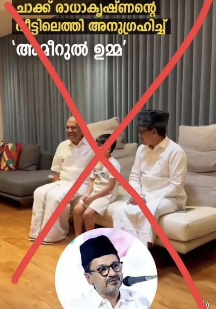 ഫോട്ടോ: സാദിഖ്‌ അലി ഞങ്ങളുടെയും കുഞ്ഞാലികുട്ടിയുടെയും സന്ദർശനത്തെ ട്രോളി സോഷ്യൽ മീഡിയകളിൽ ഷെയർ ചെയ്യപ്പെടുന്ന പോസ്റ്റാറുകളിൽ ഒന്ന്.
