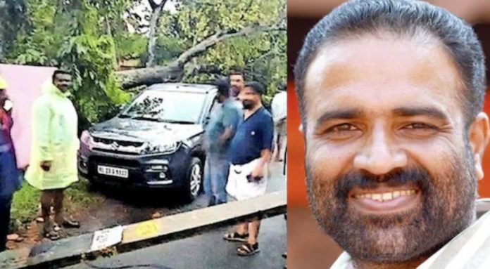 കരുനാഗപ്പള്ളി: കടപുഴകി വീണ കൂറ്റൻ ആഞ്ഞിലിമരത്തിനും പൊട്ടിവീണ ഇലക്ട്രിക് പോസ്റ്റിനും ഇടയിൽ കുടുങ്ങിയ കാറിൽ നിന്ന് സി.ആർ.മഹേഷ് എംഎൽഎ അദ്ഭുതകരമായി രക്ഷപ്പെട്ടു. സൈക്കിളിൽ വന്ന മൂന്നു കുട്ടികളും അപകടത്തിൽനിന്നു രക്ഷപ്പെട്ടു. ഇന്നലെ വൈകിട്ട് 6.30 ഓടെ തഴവ മണപ്പള്ളി തെക്ക് തണ്ണക്കര മുക്കിനു കിഴക്ക് തുരുത്തിക്കാട്ട് മുക്കിനു സമീപമായിരുന്നു സംഭവം.