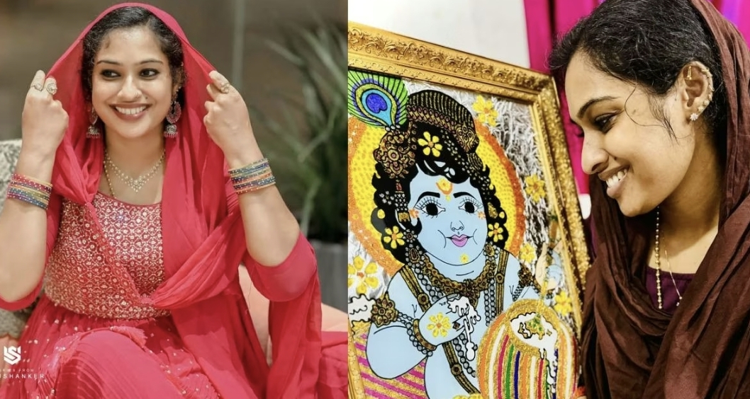 ‘വര തുടങ്ങിയ സമയത്ത് വീട്ടിൽ നിന്നും കുറച്ച് എതിർപ്പുണ്ടായിരുന്നു. അന്ന് ഭർത്താവും പറഞ്ഞു, വീട്ടുകാർക്ക് ഇഷ്ടമല്ലെങ്കിൽ വരയ്ക്കണ്ട എന്ന്. ആ സമയത്ത് വര നിർത്തിയേക്കാം എന്ന് കരുതിയതാണ്. അപ്പോൾ പ്രായമായ ഒരു ചേച്ചി അവരുടെ കല്യാണം ഒന്നും കഴിഞ്ഞിട്ടില്ല. ഒരു കൃഷ്ണനെ വേണം എന്നൊക്കെ പറഞ്ഞ് വിളിച്ചു. അന്ന് ഞാനവരോട് പറഞ്ഞു ചേച്ചീ ഞാൻ വരച്ച കണ്ണനെ വീട്ടിൽ വച്ചാൽ ആഗ്രഹം സാധിക്കും എന്നതൊക്കെ ആളുകൾ വെറുതെ പറയുന്നതാണ്. അത് വച്ചാൽ ആഗ്രഹം നടക്കും എന്നൊന്നുമില്ല. ഞാനത് വിശ്വസിക്കുന്നുമില്ല. കാരണം, ഞാൻ കണ്ണനെ വച്ച് ആരാധിക്കുന്ന ഒരു വ്യക്തിയല്ല. പക്ഷേ, വേണമെങ്കിൽ ഞാൻ വരച്ചു തരാം എന്ന് പറഞ്ഞു. അങ്ങനെ അത് കൂടി കൊടുത്തിട്ട് നിർത്താമെന്ന് വച്ച് വരച്ചുകൊടുത്തു’