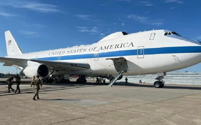 വാഷിങ്ടൺ: ഇറാനെതിരെ സാധ്യമായ നടപടികൾക്ക് അമേരിക്ക നീങ്ങുന്നതുമായി ബന്ധപ്പെട്ട വാർത്തകൾക്കിടിയിൽ ലൂസിയാനയിലെ ബാർക്സ്ഡെയ്ൽ വ്യോമസേനാ താവളത്തിൽ നിന്നും പറന്നുയർന്ന് യുഎസ് സൈനിക വിമാനമായ ‘ഡൂംസ്ഡേ പ്ലെയിൻ’. ആണവ ആക്രമണത്തെ അതിജീവിക്കാൻ കഴിയുന്ന E-4B നൈറ്റ് വാച്ച് എന്നറിയപ്പെടുന്ന വിമാനം നാല് മണിക്കൂറിലധികം ആകാശ നിരീക്ഷണം നടത്തിയതിനുശേഷം മേരിലാൻഡിലെ ജോയിന്റ് ബേസ് ആൻഡ്രൂസിൽ ലാൻഡ് ചെയ്തു.