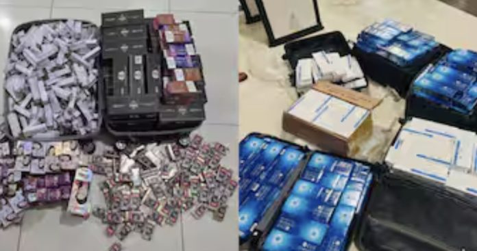 അനധികൃതമായി കടത്തിക്കൊണ്ടുവന്ന അഞ്ച് ലക്ഷത്തിലേറെ രൂപ വില വരുന്ന സിഗരറ്റുകളാണ് പിടികൂടിയത്. ഇതോടൊപ്പം ഫെയ്സ് വാഷ് ഉൽപ്പന്നങ്ങളും ഇവരുടെ കൈയ്യിൽ നിന്നും കസ്റ്റംസ് പിടിച്ചെടുത്തിട്ടുണ്ട്.