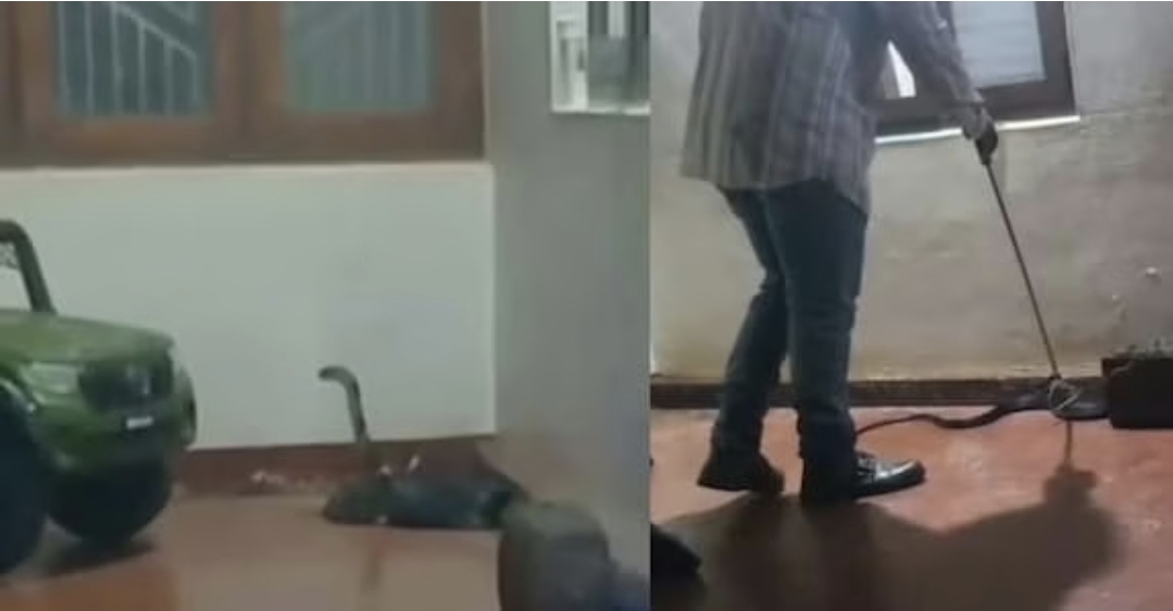 കുട്ടിയുടെ കളിപ്പാട്ടത്തിനടിയിൽ രാജവെമ്പാല; ഞെട്ടലിൽ വീട്ടുകാർ | വീഡിയോ