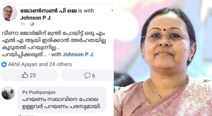 ‘മന്ത്രി പോയിട്ട് എംഎല്‍എ ആയി ഇരിക്കാന്‍ പോലും അര്‍ഹതയില്ല’; വീണാ ജോര്‍ജിനെതിരെ പാർട്ടി നേതാക്കൾ പരസ്യമായി രംഗത്ത്
