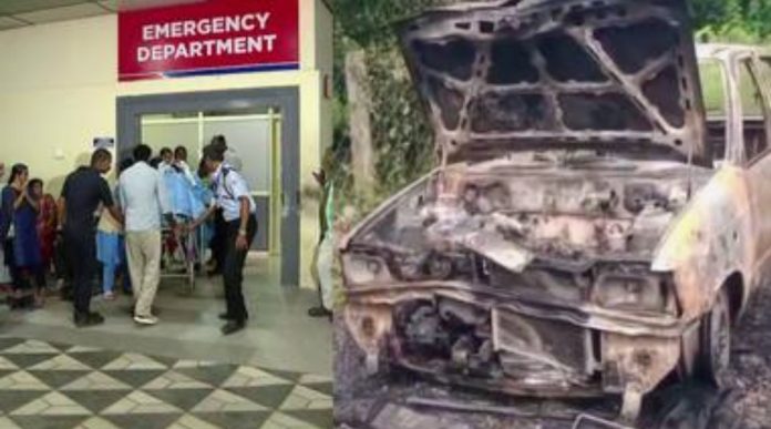 കാറിന് തീപിടിച്ച് പൊള്ളലേറ്റ അമ്മയും മക്കളും ഗുരുതരാവസ്ഥയിൽ; എൽസിക്കും മക്കൾക്കുമായി പ്രാർത്ഥനയോടെ കുടുംബവും നാടും