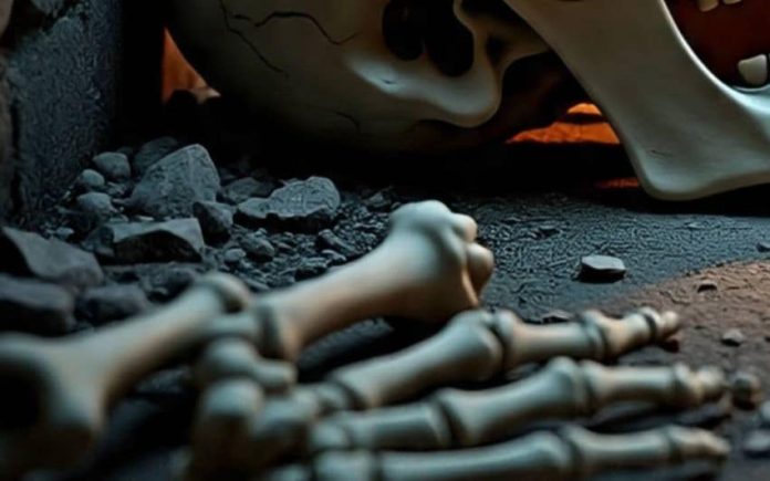 വീഡിയോയിൽ വീടിന്റെ അടുക്കള പോലെ തോന്നിപ്പിക്കുന്ന ഭാഗത്ത് തറയിൽ കമിഴ്ന്നു കിടക്കുന്ന ഒരു അസ്ഥികൂടം കാണാം. അവശിഷ്ടങ്ങൾക്ക് ചുറ്റുമായി പാത്രങ്ങൾ ചിതറിക്കിടക്കുന്നതും കാണാം.