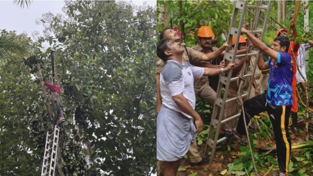 തുടര്ന്ന് ഫയര് ആന്ഡ് റെസ്ക്യൂ ഓഫീസര് കെ കെ പ്രജിത്തും നാട്ടുകാരനായ മരംവെട്ട് തൊഴിലാളിയായ സുഭാഷും മരത്തില് കയറി. തൂങ്ങിനിന്ന അഹമ്മദിനെ കയര് ഉപയോഗിച്ച് മുകളില് കെട്ടിവയ്ക്കുകയും റെസ്ക്യൂ നെറ്റില് കയറ്റിയതിന് ശേഷം കയര് അറുത്തുമാറ്റി മറ്റ് സേനാംഗങ്ങളുടെ സഹായത്തോടെ താഴെ ഇറക്കുകയുമായിരുന്നു.