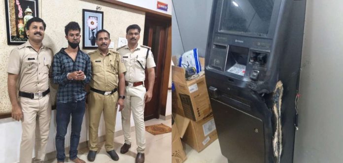 രാത്രികാല പരിശോധനയ്ക്കിറങ്ങിയ പൊലീസ് ഷട്ടറുകളുടെ പൂട്ട് തുറന്നതായി കണ്ട് പരിശോധന നടത്തിയപ്പോഴാണ് കൗണ്ടറിന് അകത്തുനിന്ന് പ്രതിയെ പിടികൂടിയത്. പുലര്‍ച്ചെ രണ്ടരയ്ക്കാണ് സംഭവം. ഗ്യാസ് കട്ടര്‍ ഉപയോഗിച്ചാണ് എടിഎം തകര്‍ക്കാന്‍ ശ്രമിച്ചത്.