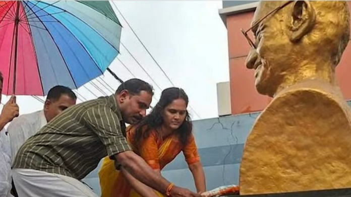 ഗാന്ധിപ്രതിമയ്ക്ക് മുന്നിൽ റീത്ത് വെച്ച് ബിജെപി പ്രവർത്തകർ; പുഷ്പചക്രം സമർപ്പിച്ചതെന്ന് വിശദീകരണം, കോൺഗ്രസ് പോലീസിന് പരാതി നൽകി