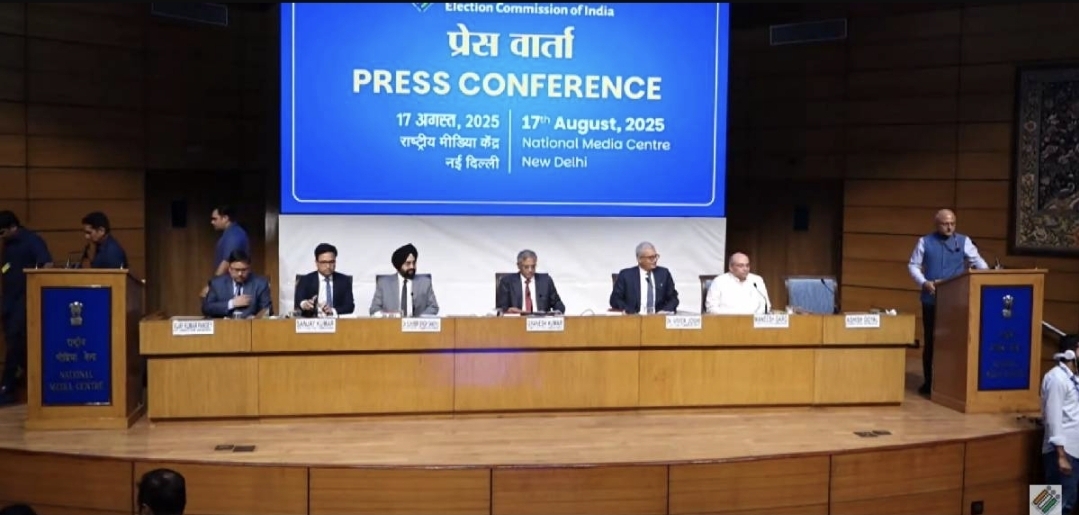 ന്യൂഡല്ഹി: ലോക്സഭാ പ്രതിപക്ഷ നേതാവ് രാഹുല് ഗാന്ധിയുടെ വോട്ടര് പട്ടിക ക്രമക്കേട് ആരോപിച്ചുള്ള വാര്ത്താസമ്മേളനത്തിനും പ്രതിപക്ഷ പാര്ട്ടികളുടെ പ്രതിഷേധങ്ങള്ക്കും പിന്നാലെ വാര്ത്താ സമ്മേളനം നടത്തി തെരഞ്ഞെടുപ്പ് കമ്മീഷന്. രാജ്യത്തെ എല്ലാ വോട്ടര്ക്കും ഒരു സന്ദേശം നല്കാനാണ് തങ്ങള് എത്തിയിരിക്കുന്നതെന്ന് മുഖ്യ തെരഞ്ഞെടുപ്പ് കമ്മീഷർ ഗ്യാനേഷ് കുമാര് പറഞ്ഞു. ഭരണഘടനാപരമായ കര്ത്തവ്യമാണ് തെരഞ്ഞെടുപ്പ് കമ്മീഷന് നിറവേറ്റുന്നതെന്നും അദ്ദേഹം പറഞ്ഞു.