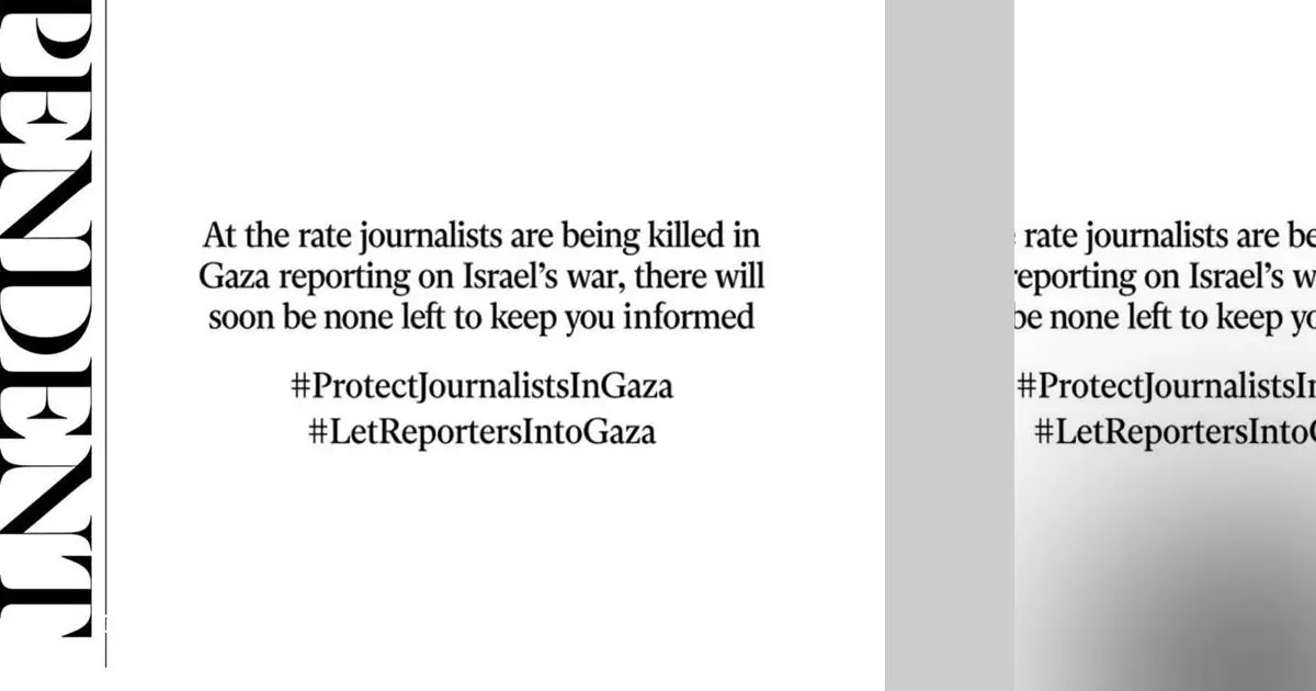 ലണ്ടൻ: ഗസ്സയിലെ മാധ്യമപ്രവര്ത്തകരുടെ കൂട്ടക്കൊലയിൽ പ്രതിഷേധിച്ച് ഒന്നാം പേജ് ഒഴിച്ചിട്ട് ബ്രിട്ടീഷ് ഓൺലൈൻ പത്രം ദി ഇൻഡിപെന്ഡന്റ്. ഇസ്രായേൽ ആക്രമണത്തിൽ കൊല്ലപ്പെടുന്ന മാധ്യമപ്രവര്ത്തകരുടെ എണ്ണം വര്ധിച്ചുകൊണ്ടിരിക്കുകയാണെന്നും ഈ സ്ഥിതി തുടര്ന്നാൽ ഇസ്രായേൽ യുദ്ധത്തെക്കുറിച്ച് ലോകത്തെ അറിയിക്കാൻ ആരും അവശേഷിക്കില്ലെന്നും ദി ഇൻഡിപെന്ഡന്റ് ചൂണ്ടിക്കാട്ടി.