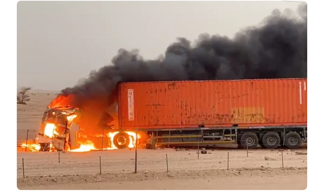 ജിദ്ദയിൽനിന്ന് ദമാമിലേക്ക് പോകുകയായിരുന്ന ട്രക്കിന് തീപ്പിടിച്ചു; മലയാളി ഡ്രൈവർ അത്ഭുതകരമായി രക്ഷപ്പെട്ടു