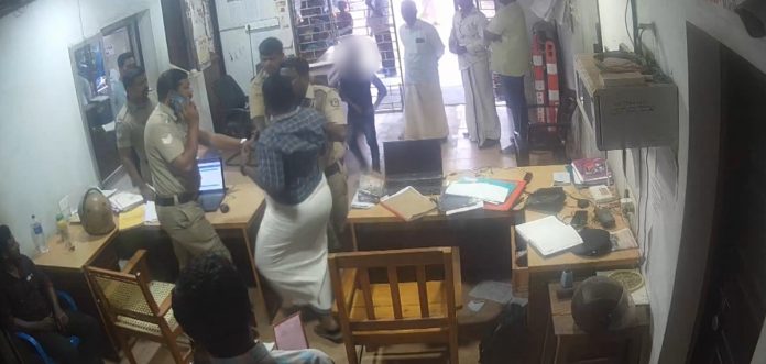 കൊല്ലം: ചവറ പൊലീസ് സ്റ്റേഷനിലും പൊലീസിന്റെ ക്രൂരത. പരാതിക്കാരനായ സിപിഐഎം പ്രവർത്തകനെ ഏഴാം ക്ലാസുകാരനായ മകന്റെ മുന്നിൽ വെച്ച് പൊലീസ് അസഭ്യം പറയുകയും പിടിച്ച് തള്ളുകയും ചെയ്യുന്നതിന്റെ സിസിടിവി ദൃശ്യങ്ങൾ റിപ്പോർട്ടറിന് ലഭിച്ചു.