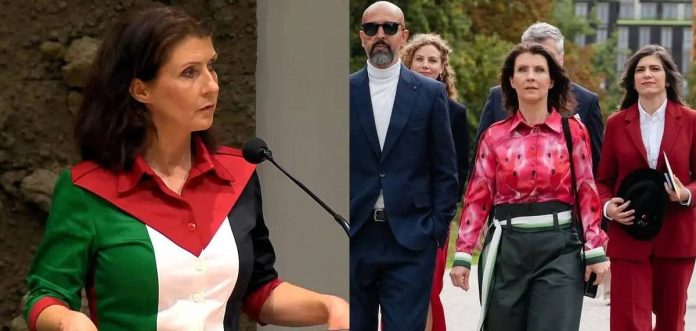 വ്യാഴാഴ്ച്ച നടന്ന പാര്ലമെന്റ് സമ്മേളനത്തില് എസ്തര് പലസ്തീന് പതാകയിലെ നിറങ്ങള്ക്ക് സമാനമായ നിറങ്ങളുളള ടോപ് ധരിച്ചാണ് എത്തിയത്. ബജറ്റ് ചര്ച്ചയ്ക്കിടെ എസ്തര് സംസാരിക്കാന് തുടങ്ങിയതോടെ സ്പീക്കര് മാര്ട്ടിന് ബോസ്മ ഇടപെടുകയായിരുന്നു.