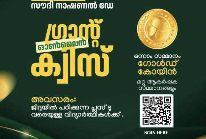 ജിദ്ദയിൽ പഠിക്കുന്ന പ്ലസ് ടു വരെയുള്ള എല്ലാ വിദ്യാർത്ഥികൾക്കും ക്വിസ് മത്സരത്തിൽ പങ്കെടുക്കാം. വിജയിക്ക് സ്വർണ്ണ നാണയം സമ്മാനമായി ലഭിക്കും. കൂടാതെ മറ്റ് ആകർഷകമായ സമ്മാനങ്ങളും ഒരുക്കിയിട്ടുണ്ട്.