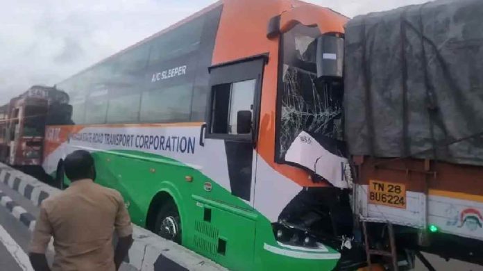 കേരള ആർടിസിയുടെ നിർമാണം പൂർത്തിയായ പുത്തൻ ബസ് കേരളത്തിലേക്ക് കൊണ്ടുവരുന്നതിനിടെ തമിഴ്നാട്ടിലെ ഹൊസൂരിൽ അപകടത്തിൽപെട്ടു. ലോറിക്ക് പിന്നിലിടിച്ച ബസിന് പിന്നിൽ മറ്റൊരു ലോറി കൂടി ഇടിക്കുകയായിരുന്നു. ഇരുവശങ്ങളും തകർന്നു. ബെംഗളൂരുവിലെ ബോഡി യൂണിറ്റിൽ നിർമിച്ച എസി സ്ലീപ്പർ ബസാണ് ഇന്നലെ രാത്രി അപകടത്തിൽപെട്ടത്. ഡ്രൈവർക്ക് പരുക്കില്ല. തിരുവനന്തപുരത്തെ സെൻട്രൽ ഡിപ്പൊയിലേക്ക് കൊണ്ടുവരികയായിരുന്നു ബസ്.