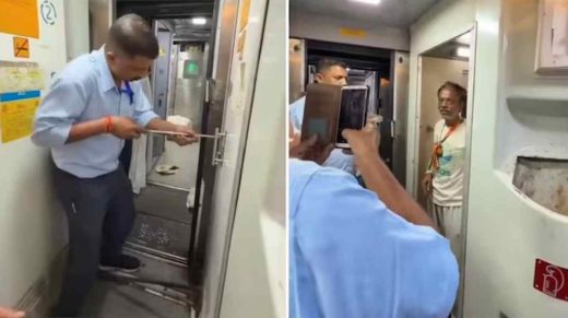 ട്രെയിനിലെ ശുചിമുറിയില് കയറി വാതില് പൂട്ടിയ യാത്രക്കാരനെ ആറുമണിക്കൂറിന് ശേഷം സുരക്ഷാ ഉദ്യോഗസ്ഥരെത്തി പുറത്തിറക്കി. ഉദ്യോഗസ്ഥരെത്തി ശുചിമുറിവാതില് തുറക്കാന് ശ്രമിക്കുന്ന ദൃശ്യങ്ങള് സമൂഹമാധ്യമങ്ങളില് വൈറലാണ്.