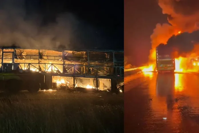 കുര്ണൂല്: ആന്ധ്രപ്രദേശിലെ കുര്ണൂലില് ബസ്സിന് തീപ്പിടിച്ച് വന്ദുരന്തം. നിരവധി പേര് മരിച്ചതായാണ് റിപ്പോര്ട്ട്. ഹൈദരാബാദില് നിന്ന് ബെംഗളൂരുവിലേക്ക് പുറപ്പെട്ട വോള്വോ മള്ട്ടി ആക്സില് സ്ലീപ്പര് ബസ്സാണ് കത്തിയത്. ബസില് 40 യാത്രക്കാരുണ്ടായിരുന്നു. 15 പേരെ രക്ഷപ്പെടുത്തി ആശുപത്രിയിലെത്തിച്ചിട്ടുണ്ട്. ഇരുചക്ര വാഹനത്തില് ബസ് ഇടിച്ചതിന് പിന്നാലെയാണ് തീപ്പിടിത്തമുണ്ടായതെന്നാണ് റിപ്പോര്ട്ട്. പുലര്ച്ചെ 3.30 ഓടെയാണ് സംഭവം.
