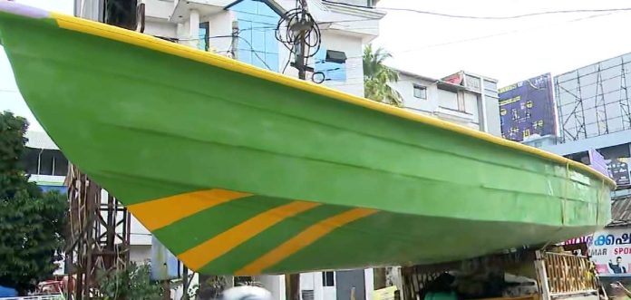 ഇന്നലെ രാത്രി പതിനൊന്ന് മണിയോടെയാണ് ഫൈബര് ബോട്ടുമായി പിക്കപ്പ് വാന് തിരുനല്വേലിയില് നിന്ന് പുറപ്പെട്ടത്. രാവിലയോടെ തൃശൂരില് എത്തി. അപകടകരമായ യാത്ര ശ്രദ്ധയില്പ്പെട്ട തൃശൂര് ആര്ടിഒ എന്ഫോഴ്സ്മെന്റ് മോട്ടോര് വെഹിക്കിള് ഇന്സ്പെക്ടര് പി വി ബിജു വാഹനം പിടിച്ചെടുത്തു. തുടര്ന്ന് നടത്തിയ പരിശോധനയിലാണ് വാഹനത്തിന് ഫിറ്റ്നസ് അടക്കമില്ലെന്ന് വ്യക്തമായി. തുടര്ന്ന് പിഴയീടാക്കുകയായിരുന്നു.