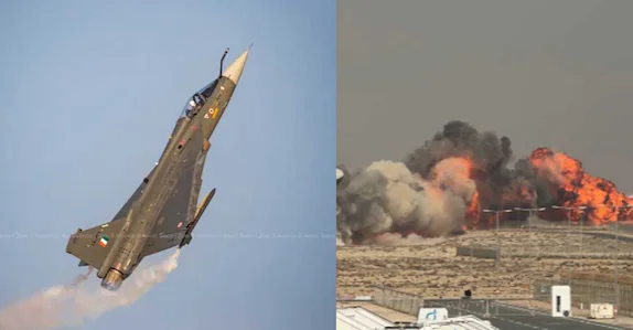 ന്യൂഡൽഹി: ദുബായ് എയർ ഷോയിൽ പങ്കെടുത്ത തേജസ് യുദ്ധവിമാനം വെള്ളിയാഴ്ച വ്യോമാഭ്യാസ പ്രകടനത്തിനിടെ മൂക്കുകുത്തി തകർന്നുവീണതായി ഇന്ത്യൻ വ്യോമസേന പ്രസ്താവനയിൽ പറഞ്ഞു. എച്ച്എഎൽ നിർമ്മിച്ച ലൈറ്റ് കോംബാറ്റ് വിമാനം അഭ്യാസം നടത്തുന്നതിനിടെ ഏകദേശം ഉച്ചയ്ക്ക് 2.10 നാണ് (പ്രാദേശിക സമയം) തകർന്നുവീണത്.