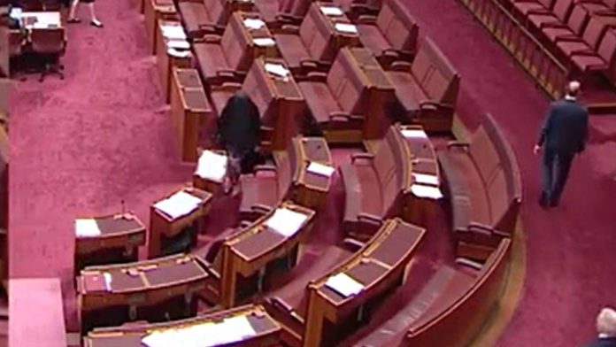 ഓസ്ട്രേലിയൻ സെനറ്റിലാണ് നാടകീയ രംഗങ്ങൾ അരങ്ങേറിയത്. ഓസ്‌ട്രേലിയയിൽ ബുർഖയും ,മുഖം മറയ്ക്കുന്ന വസ്ത്രങ്ങളും നിരോധിക്കണമെന്ന് ആവശ്യപ്പെട്ട് ബിൽ അവതരിപ്പിക്കാൻ അനുമതി നിഷേധിച്ചതിനെ തുടർന്നാണ് സെനറ്റിൽ ബുർഖ ധരിച്ചെത്തി വൺ നേഷൻ നേതാവ് പോളിൻ ഹാൻസൺ പ്രതിഷേധിച്ചത്. തുടർന്ന് പോളിനെതിരെ സെനറ്റിൽ വ്യാപക പ്രതിഷേധം ഉയരുകയും ഇവരെ സസ്പെൻഡ് ചെയ്യുകയും ചെയ്തു.