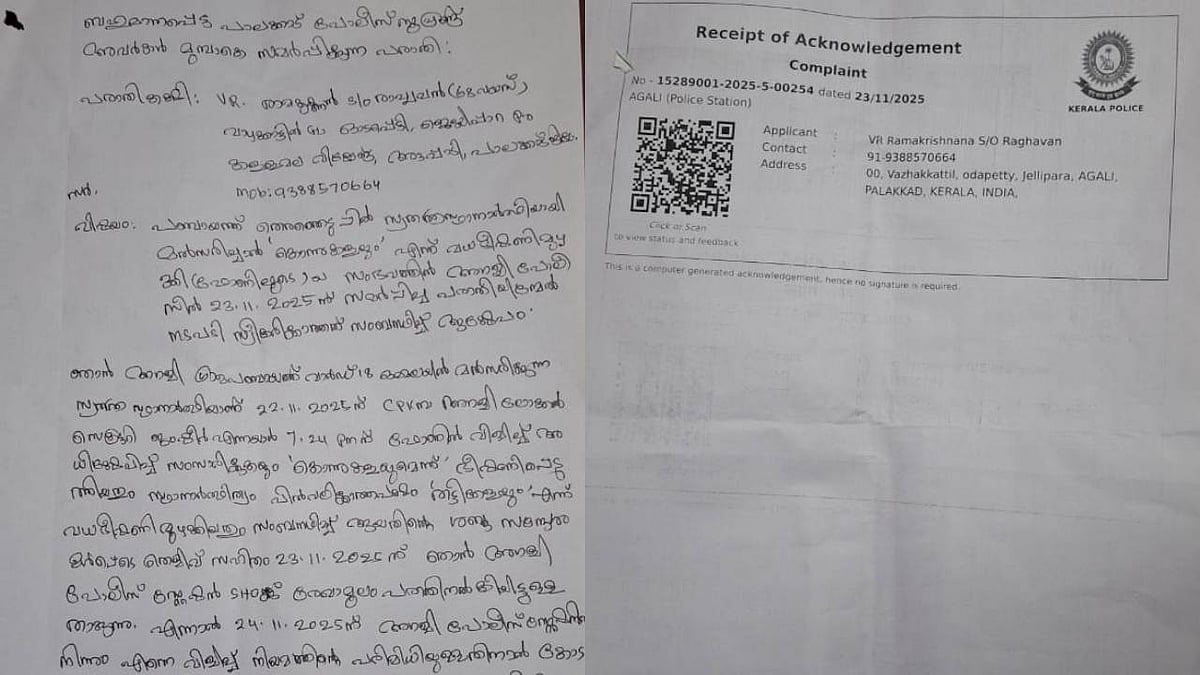 പരാതി നൽകിയിട്ടും ജംഷീറിനെതിരെ അഗളി പൊലീസ് കേസെടുക്കുന്നില്ലെന്നും രാമകൃഷ്ണൻ ആരോപിച്ചു. ഇതിനെ തുടർന്ന്, ജില്ലാ പൊലീസ് മേധാവിക്കും രാമകൃഷ്ണൻ പരാതി നൽകി. കോടതിയിൽ പോകാൻ പൊലീസ് ആവശ്യപ്പെട്ടതായും പരാതിയിലുണ്ട്. ഓഡിയോ സന്ദേശം ഉൾപ്പെടെ നൽകിയിട്ടും പരാതി സ്വീകരിച്ചില്ലെന്നും രാമകൃഷ്ണൻ ജില്ലാ പൊലീസ് മേധാവിക്ക് നൽകിയ പരാതിയിൽ പറയുന്നു.