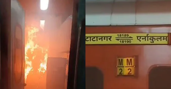 ബി1 കോച്ചിലാണ് ആദ്യം തീപിടിച്ചത്. തുടർന്ന് എം2 കോച്ചിലേക്കും തീപടരുകയായിരുന്നു. രാത്രിയായതിനാൽ യാത്രക്കാർ പലരും ഉറക്കത്തിലായിരുന്നു. അതേസമയം തീപിടിത്തത്തിന്റെ കാരണം വ്യക്തമല്ല. തീപടർന്നത് ശ്രദ്ധയിൽപ്പെട്ട ലോക്കോ പൈലറ്റ് ഉടൻ ട്രെയിൻ നിർത്തുകയും യാത്രക്കാരെ പുറത്തിറക്കുകയുമായിരുന്നു. ഇന്നലെ രാവിലെ 5 മണിക്കാണ് ട്രെയിൻ ടാറ്റാ നഗറിൽ നിന്ന് യാത്ര ആരംഭിച്ചത്. എലമഞ്ചിയിൽ രാത്രി ഒൻപത് മണിയോടെയാണ് ട്രെയിൻ എത്തേണ്ടിയിരുന്നതെങ്കിലും 3 മണിക്കൂർ വൈകിയിരുന്നു.