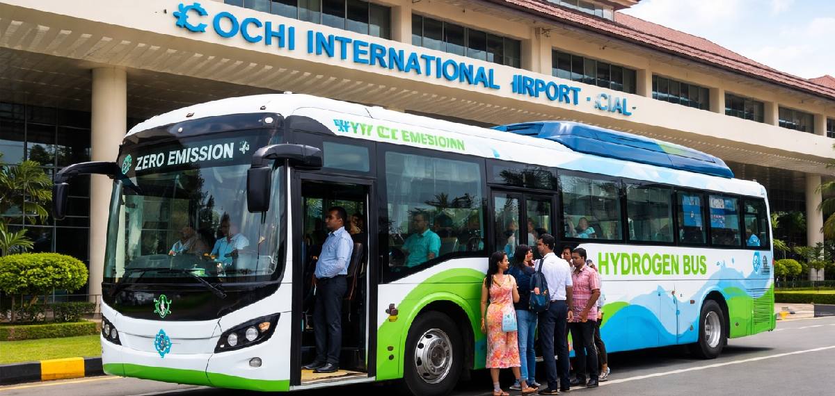 കേരള ഹൈഡ്രജന് വാലി പദ്ധതിയുടെ ഭാഗമായി, ദേശീയ ഗ്രീന് ഹൈഡ്രജന് മിഷന്റെ പിന്തുണയോടെ, കൊച്ചി വിമാനത്താവളത്തില് മൂന്ന് ഹൈഡ്രജന് ഫ്യൂവല് സെല് ഇലക്ട്രിക് ബസുകള് പ്രവര്ത്തനത്തില് കൊണ്ടുവരുന്നതാണ് പദ്ധതി.