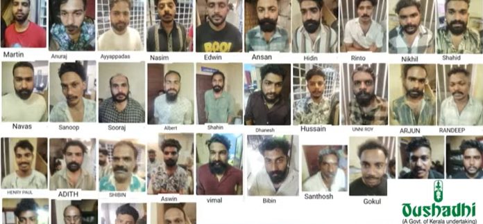 കരുവന്നൂർ പനംകുളത്ത് നിന്നാണ് ചൊവ്വാഴ്ച വൈകീട്ട് ഇവർ അറസ്റ്റിലായത്. ജില്ലയിലെ വിവിധയിടങ്ങളിൽ നിന്നുള്ള കുറ്റവാളികൾ പിറന്നാൾ ആഘോഷത്തിനെന്ന പേരിലാണ് ഒത്തുകൂടിയത്.