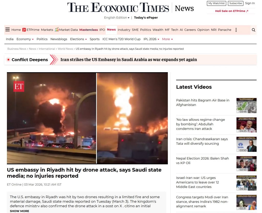 റിയാദിലെ യുഎസ് എംബസിയിലെ ഡ്രോൺ ആക്രമണം; ഇന്ത്യയിലെ മാധ്യമപ്രവർത്തകരും വിവിധ മാധ്യമങ്ങളും വ്യാജ വീഡിയോയുമായി രംഗത്ത്, പഴയ വീഡിയോ പുതിയ ദൃശ്യങ്ങളായി തെറ്റായി പ്രചരിപ്പിക്കുന്നു