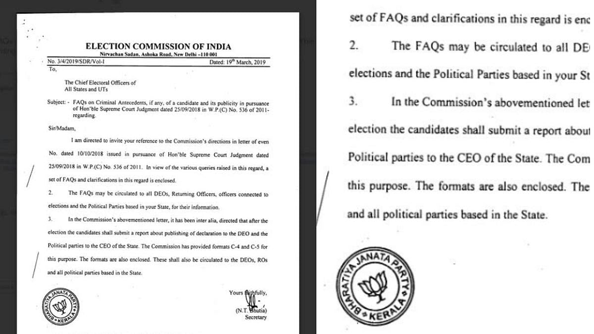 ഇലക്ഷൻ കമ്മീഷൻ ഓഫ് ഇന്ത്യയേയും ബിജെപിയേയും നിയന്ത്രിക്കുന്നത് ഒരേ ഓഫീസ് തന്നെയാണെന്ന് പരസ്യമായി അറിയുന്ന കാര്യം.എങ്കിലും കത്തിടപാടിന് രണ്ടു മേശ ഇടണം! സീൽ അങ്ങോട്ടും ഇങ്ങോട്ടും മാറിപ്പോകുന്നു. തെരഞ്ഞെടുപ്പ് കമ്മീഷന്റെ കത്തിൽ ബിജെപിയുടെ സീൽ!