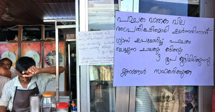 കണ്ണൂർ: പാചകവാതക സിലിണ്ടർ ക്ഷാമത്തിന് പിന്നാലെ ഭക്ഷണ സാധങ്ങൾക്ക് വിലകൂട്ടി ഹോട്ടലുകൾ. 12 രൂപയുണ്ടായിരുന്ന ചായയ്ക്കും കടിക്കും 15 രൂപയാക്കി വർധിപ്പിച്ചു. മറ്റു ഭക്ഷണ സാധനങ്ങൾക്കും സമാനമായ രീതിയിൽ വില കൂട്ടിയിട്ടുണ്ട്. ഗ്യാസ് പ്രതിസന്ധി മൂലം പല ഹോട്ടലുകളും അടച്ചിട്ടിരിക്കുകയാണ്.