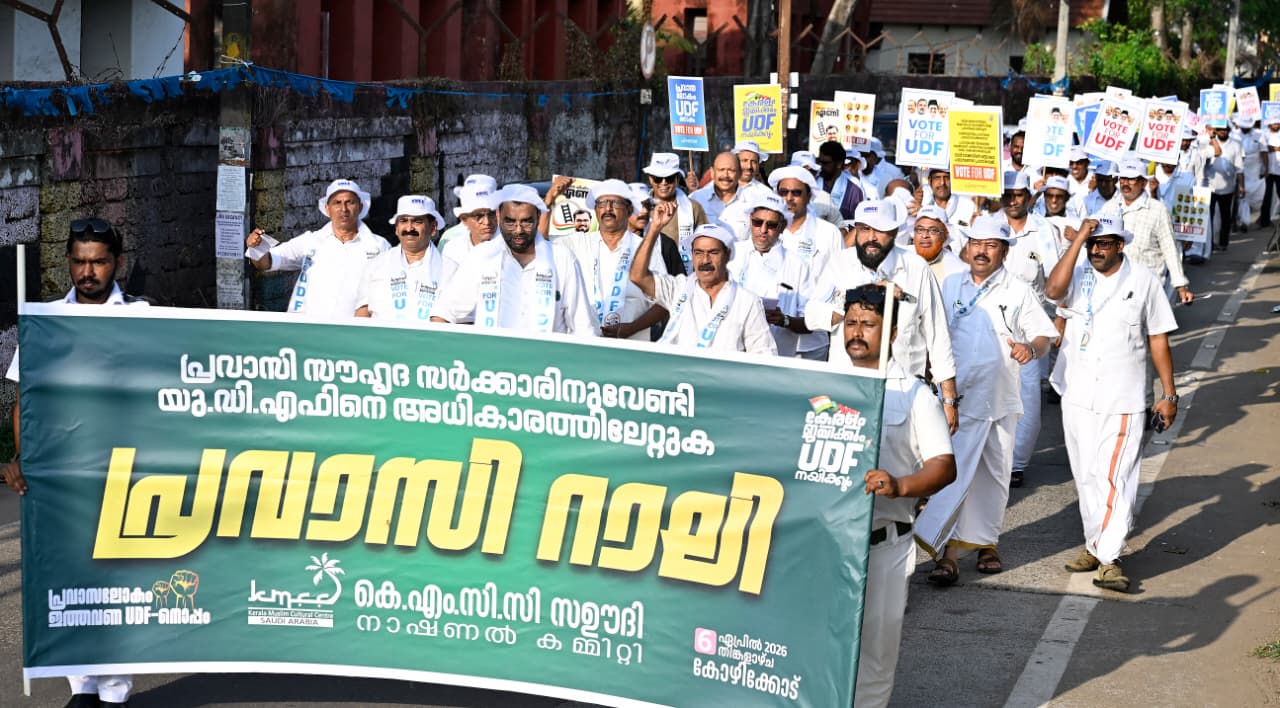 കോഴിക്കോട്: പ്രവാസി സമൂഹത്തോട് സംസ്ഥാന സർക്കാർ കാട്ടുന്ന അവഗണനയ്ക്കും വഞ്ചനയ്ക്കുമെതിരെ പ്രതിഷേധത്തിന്റെ തീജ്വാലയായി സൗദി കെ.എം.സി.സിയുടെ പ്രവാസി റാലി. വരാനിരിക്കുന്ന നിയമസഭാ തെരഞ്ഞെടുപ്പിൽ ഐക്യ ജനാധിപത്യ മുന്നണിയെ അധികാരത്തിലേറ്റണമെന്ന് ആഹ്വാനം ചെയ്തുകൊണ്ട് കോഴിക്കോട് നഗരത്തിൽ നടന്ന റാലി പ്രവാസ ലോകത്തിന്റെ കരുത്തുറ്റ മുന്നറിയിപ്പായി മാറി.