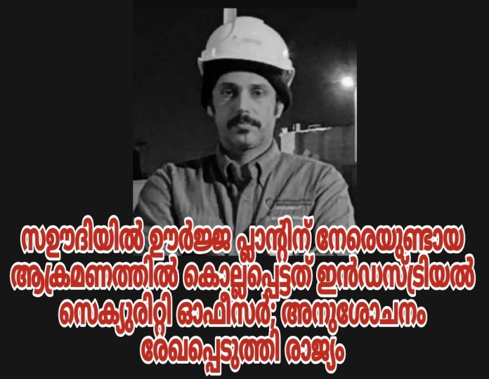 റിയാദ്: സഊദി അറേബ്യയിലെ ഊർജ്ജ സൗകര്യങ്ങൾ ലക്ഷ്യമിട്ടുള്ള ഏറ്റവും ഒടുവിൽ നടന്ന ആക്രമണങ്ങളിൽ ഡ്യൂട്ടിയിലിരിക്കെ കൊല്ലപ്പെട്ട ഇൻഡസ്ട്രിയൽ സെക്യുരിറ്റി ഓഫീസറുടെ മരണത്തിൽ രാജ്യം അനുശോചനം രേഖപ്പെടുത്തി.ജറാ മുഹമ്മദ് അൽ ഷലാൻ അൽ ഖാലിദിയാണ് ഡ്യുട്ടിക്കിടെ കൊല്ലപ്പെട്ടത്.