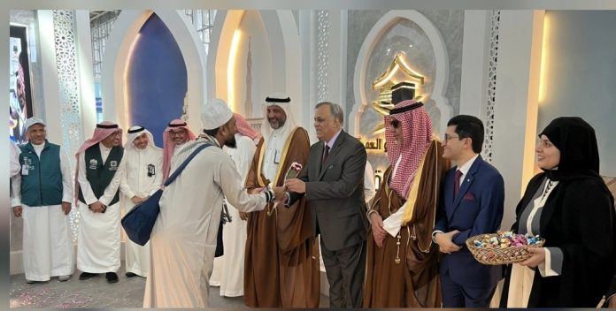 മദീന വിമാനത്താവളത്തിൽ ഇന്ത്യൻ ഹാജിമാരുടെ ആദ്യ സംഘത്തെ അംബാസഡർ ഡോ. സുഹെൽ അജാസ് ഖാൻ, കോൺസൽ ജനറൽ ഫഹദ് സൂരി, സഊദി ഹജ്ജ്ഡെപ്യൂട്ടി മന്ത്രിമാരായ പ്രൊഫ. അബ്ദുൽ അസീസ് എ. വസ്സാൻ, അയാദ് അബ്ദുറഹ്മാൻ റഹ്ബിനി, മറ്റ് മുതിർന്ന സഊദി ഉദ്യോഗസ്ഥർ എന്നിവർ ചേർന്ന് സ്വീകരിച്ചു.